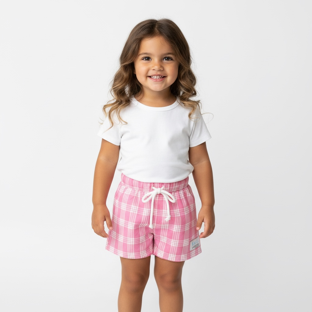 crafted from soft cotton for all-day comfort. Designed with a slightly shorter cut for a trendy look, these shorts feature an elastic waistband and a decorative drawstring, making them easy to wear and style. Perfect for day outings or lounging at home!